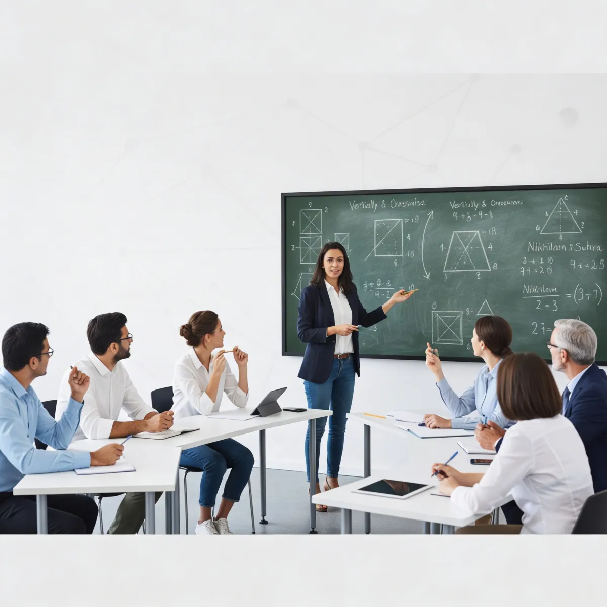 Our Vedic Maths Teacher Training Program is designed to help educators master fast calculation techniques and effectively teach them to students. The course introduces powerful mathematical shortcuts and logical methods that simplify complex calculations and improve speed, accuracy, and confidence in mathematics.